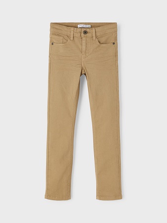 Snygg byxa i härligt Twill-tyg från Name It. Twill är ett slitstarkt, vävt tyg som karaktäriseras av sin diagonala design för en klassisk look. Byxan har justerbar midja och stängs med blixtlåsgylf och hyskknapp. Byxan är i extra stretch för en skön komfort och extra slim fit över höfter och ben. Byxan har även bälteshällor i midjan och har fickor både fram och bak.