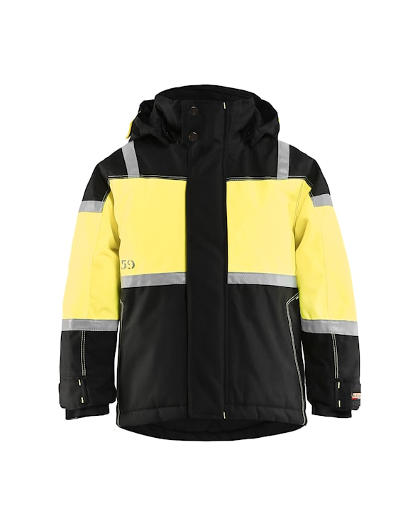 En vind- och vattentät varseljacka i barnstorlekar.