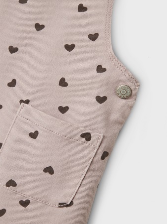 Sätt ihop den perfekta outfiten till ditt barn med en hängselklänning från Name It i slitstark twill, ett vävt tyg med ett klassiskt diagonalt mönster. Klänningen är ärmlös med en snygg fyrkantig halsringning och justerbara hängslen för en bekväm och anpassningsbar passform. Med praktiska tryckknappar som stängning blir det både enkelt och smidigt att klä på och av – en perfekt kombination av stil och funktion för vardagens alla äventyr. Dessutom pryds klänningen av fina små hjärtan som ger en extra charmig detalj.