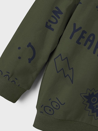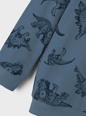 Fin sweatshirt i oborstat sweat-tyg från Name It. Oborstat sweat-tyg har en slät yta och öglor på insidan för en bekväm känsla. Sweatshirten har rund halsringning, lång ärm, ribbade kanter och en boxig passform. Sweatshirten kommer beroende på val av färg med olika tryck. Välj mellan blå eller gul med dinosaurier på eller grön med rymd-inspirerat tryck på. Finns även matchande byxa, art.nr: 310856.