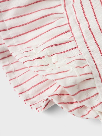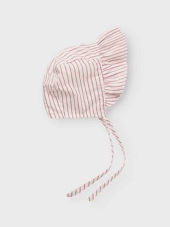 Den sötaste lilla sommarhatten från Name It med volangkant och knytband. Hatten har ett enkelt och fint utseende med den röda randen i tyget.