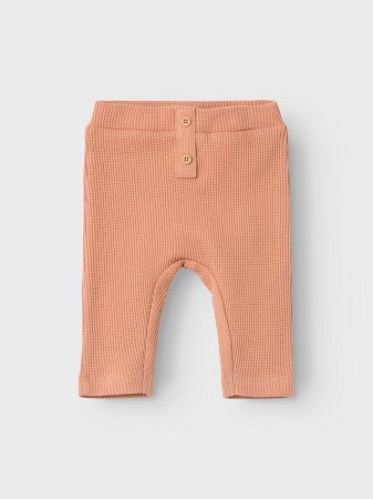 Leggings i våfflad trikå från Name It! Leggingsen har justerbar midja med knappdetalj framtill och kommer i en fin aprikosfärg.
