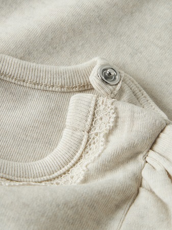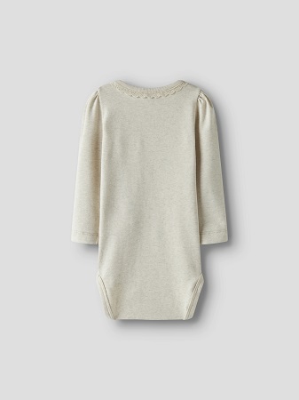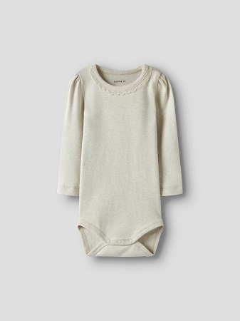 Den finaste bodyn från Name It ett mjukt och bekvämt plagg för barn, perfekt för både lek och vila. Bodyn har långa ärmar och en rund halsringning med en söt spetskant som ger ett extra fint uttryck. Tryckknappar vid axeln och i grenen gör av- och påklädning enkel och smidig. Tillverkad i en mjuk kvalitet som är skonsam mot barnets känsliga hud och ger bra rörelsefrihet under hela dagen. En underbar body för de minsta!