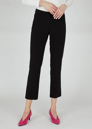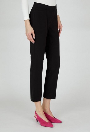 Byxa Jacklyn i en enkel men stilren design från Robell. Byxan har resår i midjan och är rak i benen. Byxan har en tight passform upptill som sedan övergår till en mer avslappnad passform nedtill vid vaderna och benen. Byxan har fuskfickor bak för en snygg look.