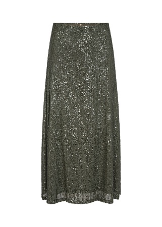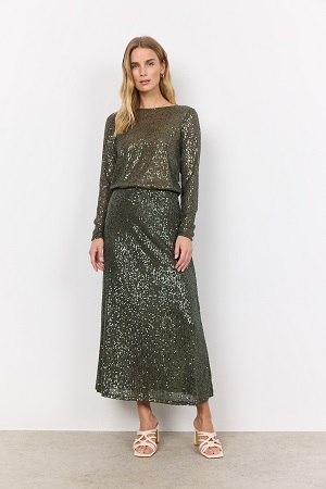 Elegant a-linjeformad maxikjol i glittriga paljetter från Soya Concept ett perfekt val för en sofistikerad och festlig look. Kjolen har en hög midja och ett mjukt resårband för en bekväm och smickrande passform. Med sin maxilängd och det fina paljettmaterialet får du en iögonfallande och glamourös stil. Den mjuka underkjolen ger extra komfort, perfekt för både speciella tillfällen och utekvällar där du vill lysa upp din look.