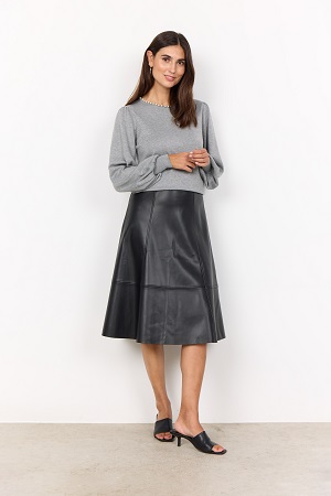 Trendig kjol i skinnimitation från Soya Concept – ett stilrent plagg med normal midja och en praktisk dragkedja i sidan. Den a-linjeformade designen och midilängden ger kjolen en tidlös och elegant siluett, perfekt för både vardag och fest. För en edgy men samtidigt klassisk look, styla kjolen med en oversized skjorta och en stickad väst.
