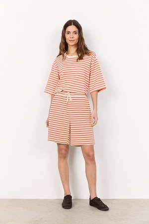 Randiga shorts i mjuk kvalitet från Soya Concept det perfekta plagget för dig som vill kombinera stil med komfort. Det randiga mönstret ger en modern känsla, medan den elastiska midjeresåren med dragsko gör det enkelt att justera passformen efter behov. Den avslappnade skärningen ger gott om rörelseutrymme, vilket gör shortsen lika bekväma att bära hemma som under en aktiv dag.