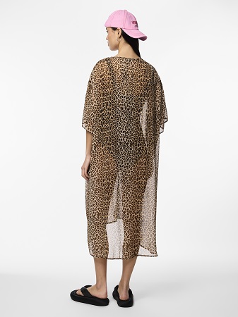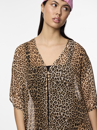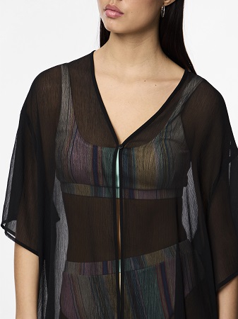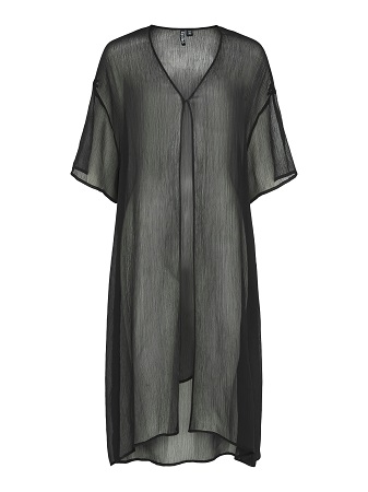 Vacker skir kaftan från Pieces. Kaftanen är tillverkad i vävd polyester med en subtil, randig grundstruktur som ger en elegant och exklusiv känsla. Trots sin lätthet har materialet en tätare kvalitet som gör plagget både stilfullt och mångsidigt. Den luftiga, oversizade modellen faller vackert och skapar en mjuk, svepande silhuett, medan de vida ärmarna bidrar till en avslappnad och sofistikerad look. Kaftanen har en stilren V-skärning som följs av en knapp, varefter den är öppen framtill nedtill, vilket ger en luftig rörelse och gör den enkel att bära över olika outfits.