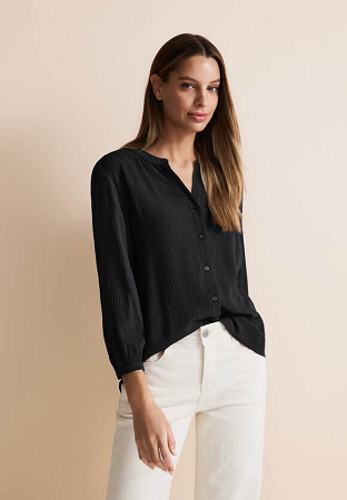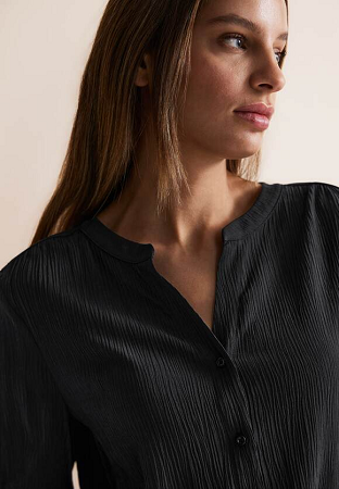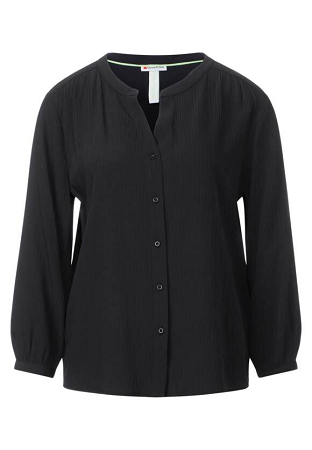 Skjorta från Street One. Med långa ärmar, slitsad krage och knappslå kombinerar den tilltalande design med lättskött Crinkle-kvalitet i viskosblandning. En praktisk fördel är att skjortan inte behöver strykas, vilket gör den till det perfekta valet för enkel och stilsäker vardagsklädsel.