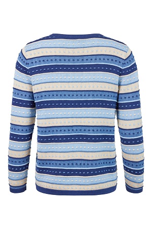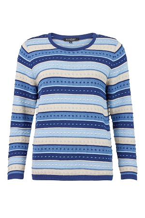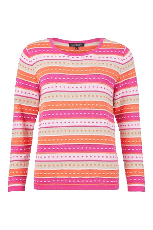 Elegant finstickad tröja från Sunday, perfekt för att skapa en stilfull och bekväm look. Tillverkad i en mjuk blandning av bomull och akryl, erbjuder tröjan både komfort och hållbarhet. Den har en klassisk rund halsringning, långa ärmar och en normal passform som ger en smickrande silhuett. Det iögonfallande mönstret i flera färger ger tröjan en unik och trendig touch.