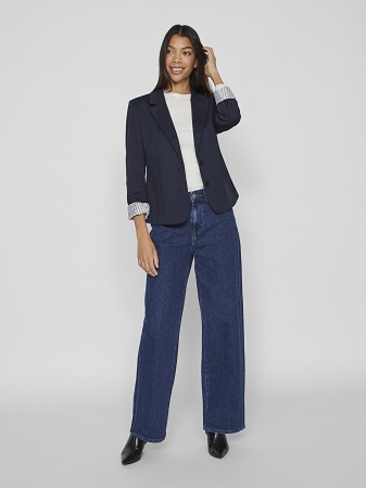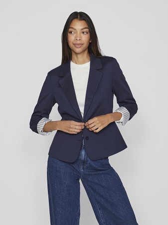 Snygg kavaj från Vila! Figursydd kavaj i en fin marinblå färg, designad med en elegant stängning som pryds av två knappar vilket ger en stilfull look. Kavajen har axelvaddar och kritstrecksrandigt foder. Kavajen har en normal passform och den är både bekväm och sofistikerad, perfekt för alla olika tillfällen!