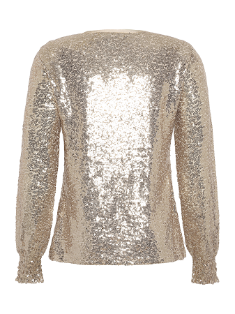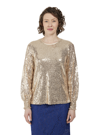 Glittrig paljettopp från Brandtex – en festlig och stilren topp med rund halsringning och långa ärmar med lätt ballongeffekt. Toppen är dekorerad med skimrande paljetter som skapar ett elegant mönster och ger ett glamoröst intryck. Med en normal passform är denna paljettopp både bekväm och smickrande, perfekt för festliga tillfällen eller när du vill sätta extra glans på vardagen.