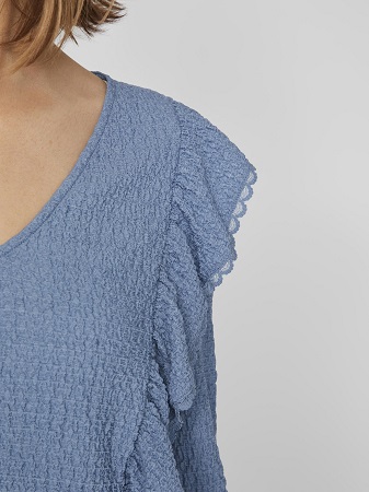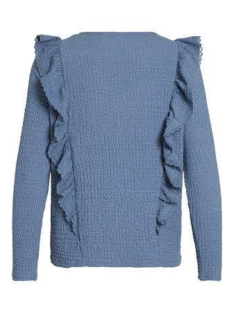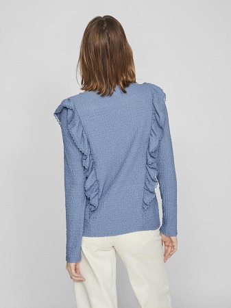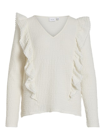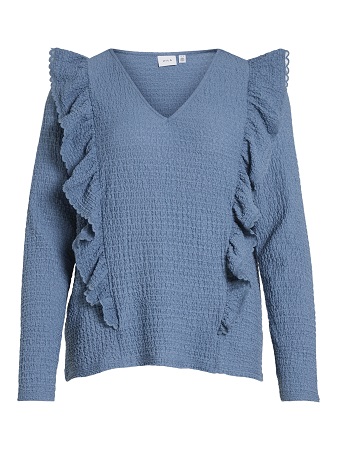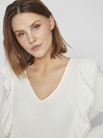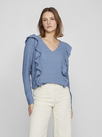 Fantastisk fin topp från Vila! Med dess eleganta detaljer som långa ärmar, volanger och en smickrande v-ringning, är denna topp ett måste i garderoben. Det vackra tyget ger en känsla av lyx och komfort. Kombinera den med jeans för en avslappnad och trendig look eller matcha den med en kjol och klackar för en mer sofistikerad stil.
