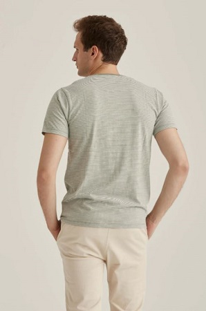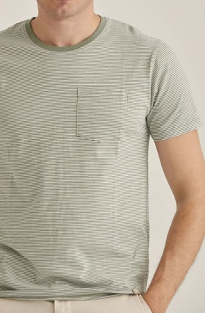 Randig t-shirt i 100% bomull med bröstficka från Erla. T-shirten har kort ärm och en rund halsringning.