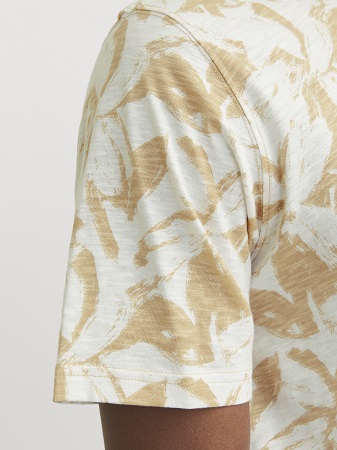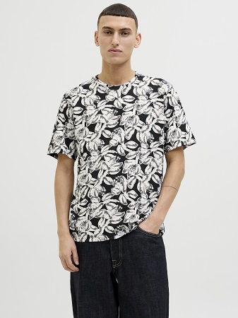 Klassisk snygg T-shirt från Jack & Jones. Med sin rundringade hals och korta ärmar erbjuder den en tidlös design som fungerar både till vardags och vid mer avslappnade tillfällen. Den har ett stilrent mönstrat tryck som ger en mjuk känsla och en behaglig yta, vilket gör den extra bekväm att bära. T-shirten har en normal passform, vilket ger en skön och avslappnad silhuett.