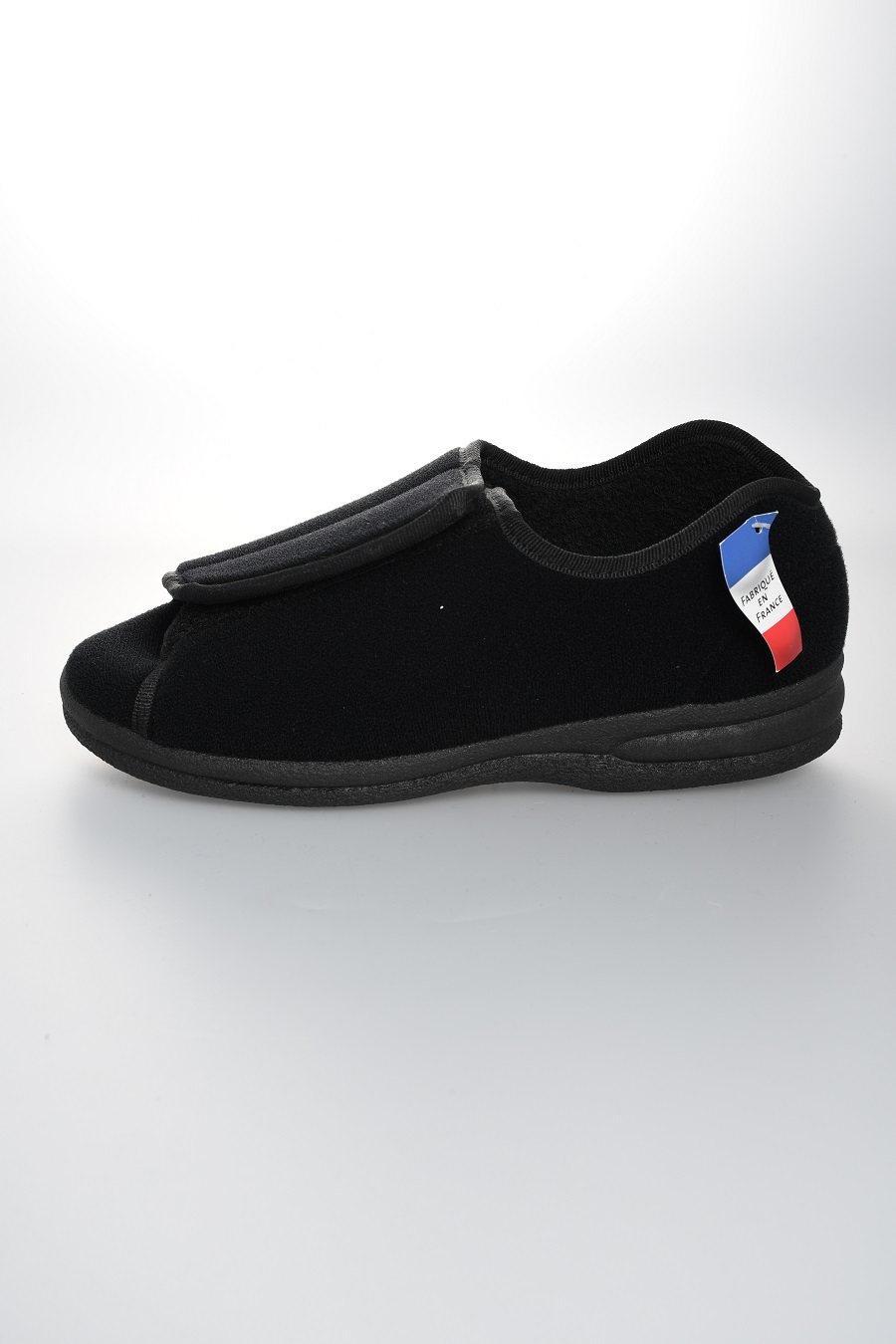 Innetoffel med kardborrband som går att öppna hela vägen från tån och upp längst foten. Skon finns även i storlekarna 36-41.